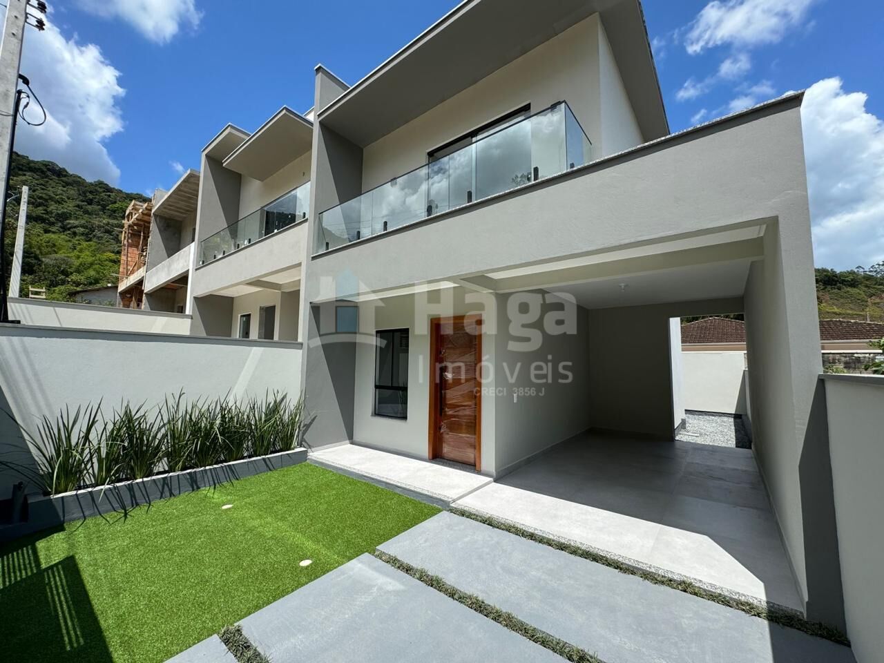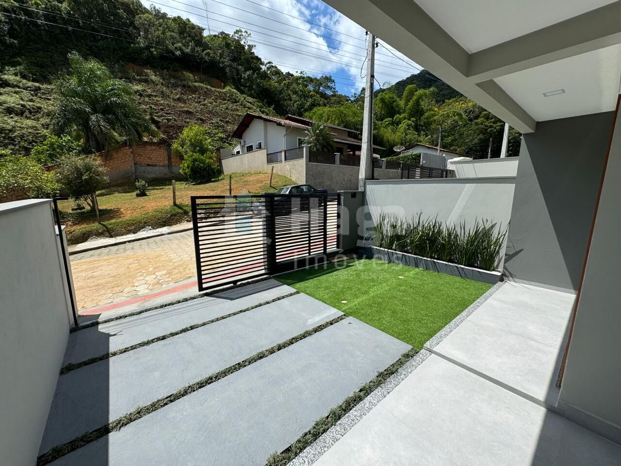 - Jardim frontal com grama sintética