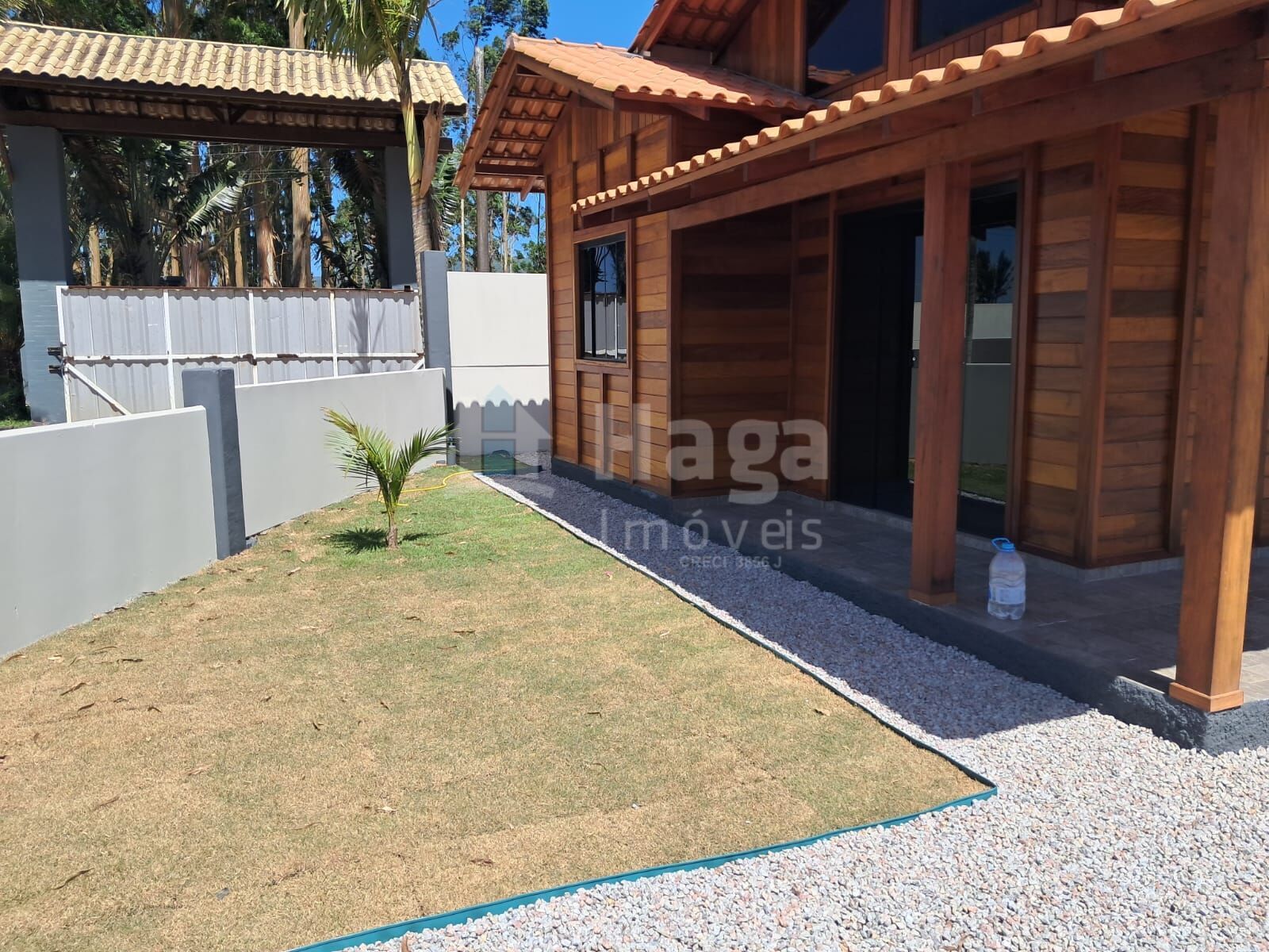 Possui uma casa nova, construída com madeira do Norte de alta qualidade, que se destaca pelo pé direito alto, garantindo uma sensação de amplitude e aconchego: