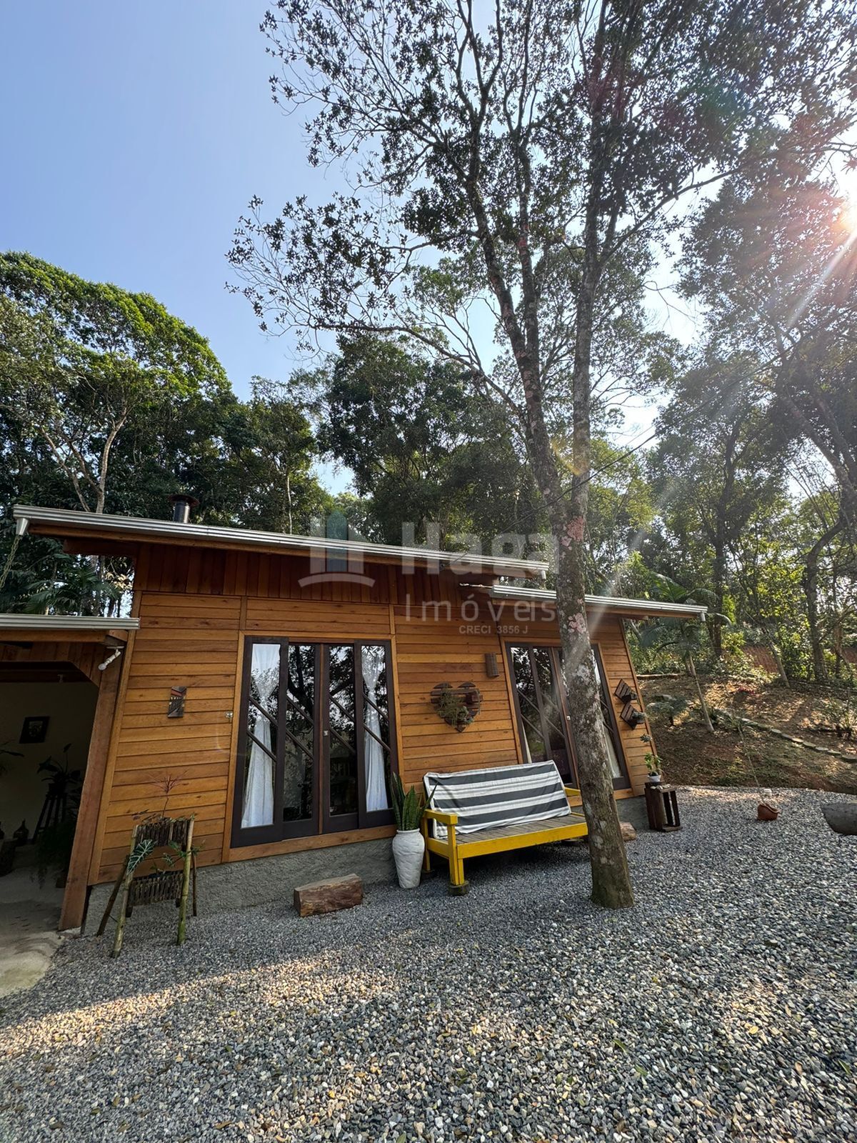 Belíssima chácara com 1.530 m² de área total, localizada em Canelinha/SC. A propriedade conta com uma charmosa casa rústica construída em madeira duplada, composta por: