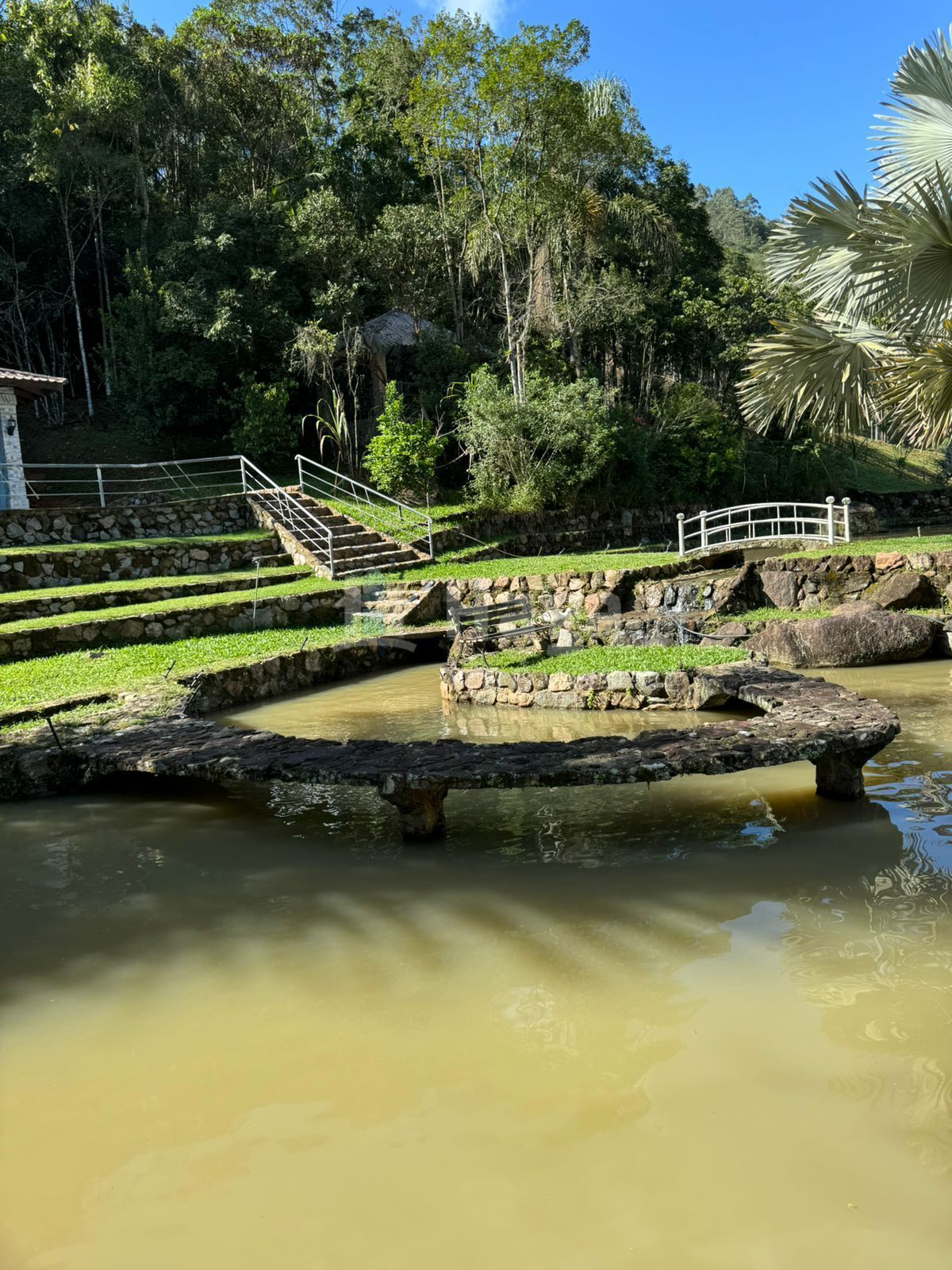 Mirante contemplativo com vista para o lago (com alevinos ornamentais)