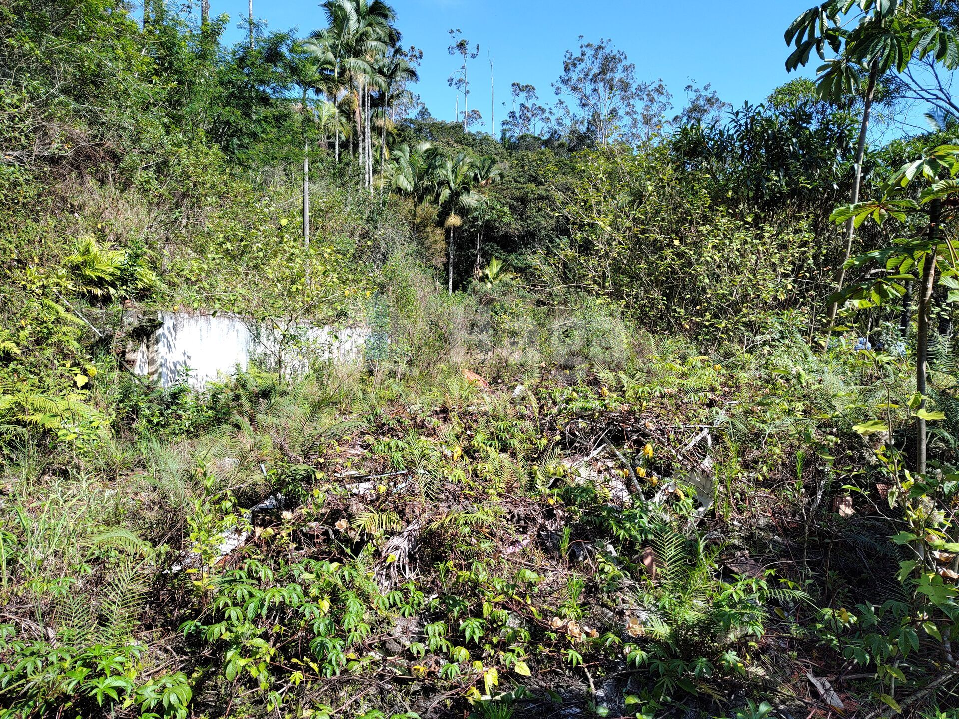 E possui uma casa de 3 quartos no pé do morro, murada e portão.